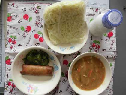 みそラーメン 春巻き きゅうりのナルム 麺 牛乳