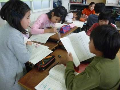 この単元の学習もそろそろ大詰めです。今日は「筆者の説明の仕方の工夫について話し合おう」ということをめあてとしました。各自考えたことをワークシートに書いて、グループ内で交流しました。