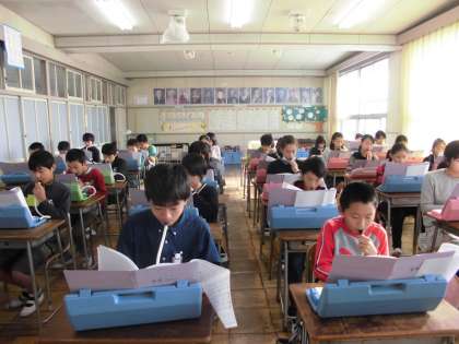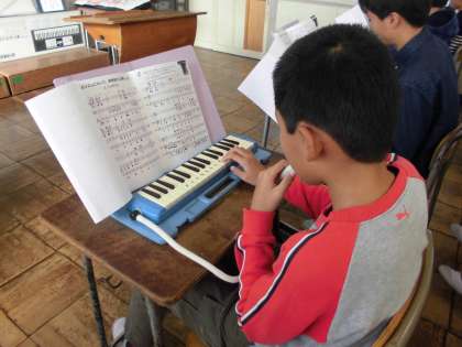 音楽室からは軽快なリズムの鍵盤ハーモニカの音色が聴こえてきます。6年生の音楽の授業の様子です。CDの伴奏に合わせながら、全員で演奏することができました。