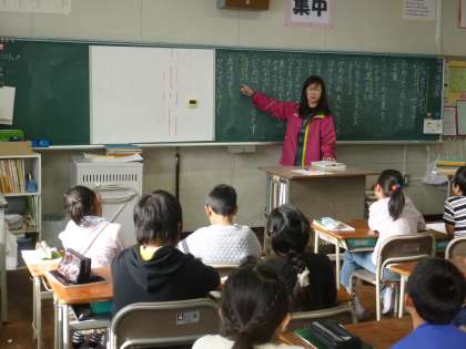 人権週間に向けて、各クラスでは、クラス全員の思いを生かした人権標語をつくっています。言いたい言葉を全員が出し合い、黒板上で練りあい、一つの標語に仕上げていきました。やさしさと思いやりにあふれた学級にしたい気持ちがよく伝わりました。