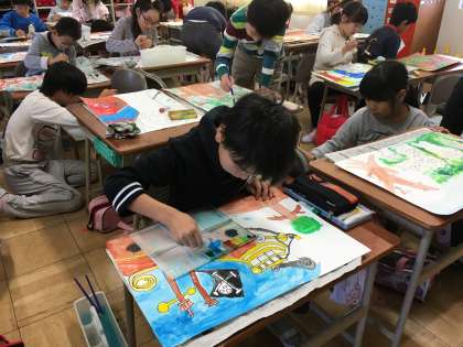 読書感想画の色ぬりを行いました。児童たちは集中して、筆を進めることができました。