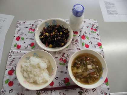 けんちん汁 ひじきの炒め煮 ご飯 牛乳