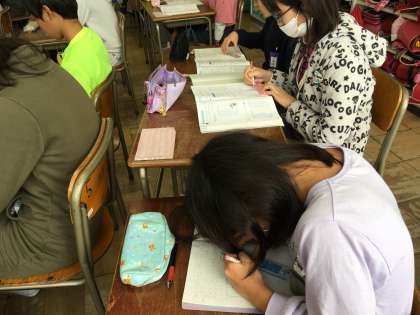 ちらばりの様子をグラフに表そうというめあてで、授業を進めました。教科書に書かれている表から、グラフに書きなおすことができました。