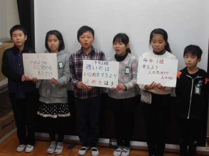 12.2 児童集会「クラスの人権標語発表」