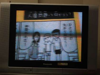 本日の朝礼では、人権について校長から話をしました。人権を考えてもらうために、愛知県が作ったポスターに描かれたマンガを紹介しました。私たちは、自分と違う「ふつう」に出会った時、このマンガの登場人物たちのように、相手の人ときちんと話をして、相手の人のことを受け入れ、自分の「ふつう」を広げていくことが、お互いの人権を大切にすることになります。相手の立場になり、暖かい心を広げることです。人権が守られ、誰もが笑顔で、明るく幸せに過ごせる学校にしていきましょう。