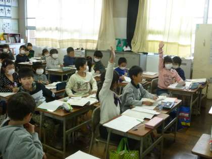 国語では、「わかりやすい文章の組み立てを考えよう」をめあてに学習を進めました。分かりやすい文章を書くために、「はじめ」「中」「終わり」に分けた「組み立てメモ」を書くことを説明しました。