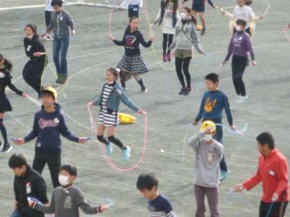 中間放課には、運動場いっぱいに子どもたちが出てきます。「リズム縄跳び」がしたくて、一目散に出てきます。今の時期の積み重ねは、風邪やインフルエンザにかかりにくい体作りにはもってこいの取り組みです。まさに、今やることが大切です。子どもたちのやりたいという気持ちが強く、その気持ちを大切にしてやりたいと思います。