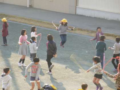 暖かな昼放課でした。多くの子どもたちが外で思い思いの遊びをしていました。外で遊んで、体を動かすことは、風邪をひきにくい体づくりや体力向上においても大切な営みです。