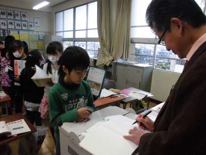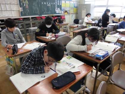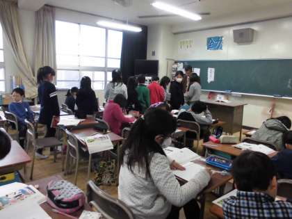 4年生の国語の授業です。「のはらうた」という詩の学習を行いました。詩を参考にして、自分で詩を作りました。自分の名前も野原に関係する植物の名前や、野原にいる生き物たちの名前を使いました。児童たちの詩はどれもリズミカルで、生き生きとしていて、読み手の気持ちが温かくなる詩ばかりでした。