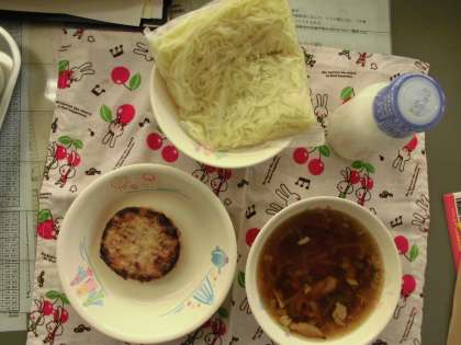 しょうゆラーメン いかのキャベツ焼き 牛乳