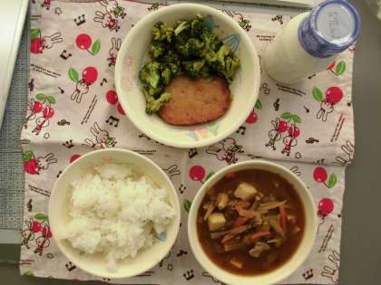 豚汁 焼きハム ご飯 牛乳 ブロッコリーのおかかあえ