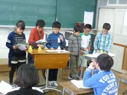ミュージックベルを使って演奏しました。「エーデルワイス」や「もののけ姫」など、即席グループでの発表でした。自分の音が割り振られてから、ほんのわずかな時間でこのような演奏をやってのけました。