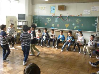 自分たちで計画したり、準備をしてきた「おたのしみ会」をしました。つらいことや大変だったこともよく頑張りぬいた子どもたち。今日は、精いっぱいのご褒美です。子どもたちの満面の笑みが教室からあふれんばかりでした。