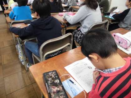 明日から冬休みです。生徒指導部からのたより「よい子の冬休み」を使い、学活を行いました。お金の無駄遣いをしないこと、家の大掃除のお手伝いをすること。また、外出するときには防犯ブザーやホイッスルを持って出かけること。さらに、計画的に学習することや健康や安全に気をつけて生活することをプリントを通して学習しました。児童たちは、配布されたプリントに大切なことに赤でマークしたり」、書き込んだりしていました。