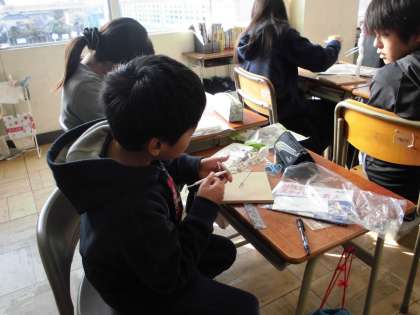 将来の自分を想像し,心を込めて立体に表す授業を行いました。場面を構想しながらポーズを決め,紙粘土で肉付けをする作業です。どの児童も将来の自分を夢見ながら、一生懸命作成していました。