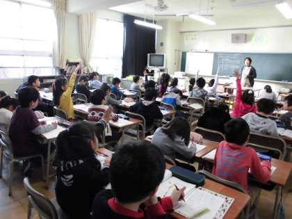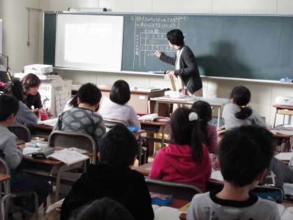 2年生では、九九の表のおもしろさに気づき,進んできまりを見つける授業を進めています。児童たちは、表を見ながら数字の増え方について、学習することができました。