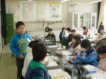 「食塩やホウ酸をよりたくさん溶かすためには、どうすればよいか」ということについて考えさせました。そこで、「水を増やす方法」と「あたためる方法」で試してみることにしました。