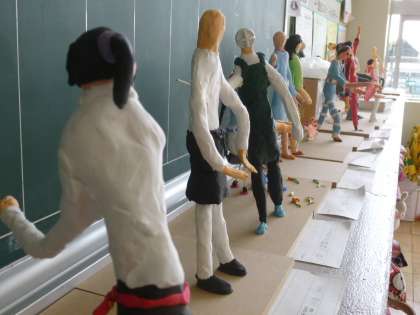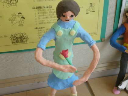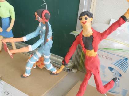 図工では、将来就きたい職業をイメージして、動きのある作品を作っています。針金の骨組みに粘土をつけて、着色まで終わりました。なかなかの力作が並んでいます。学校公開の際にご覧いただくことができそうです。