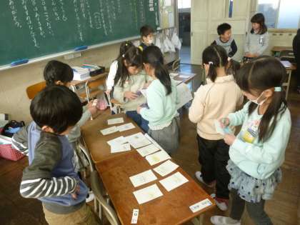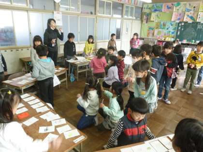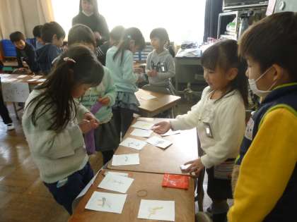 「おみせやさんをひらこう」という生活科の学習をしました。おもちゃ屋さんやお菓子屋さんなど、カードで手作りの商品をつくってならべました。買う時のことばや売る側の言葉など、大きな声で言うよう指導しました。みんな楽しそうに買い物をしていました。