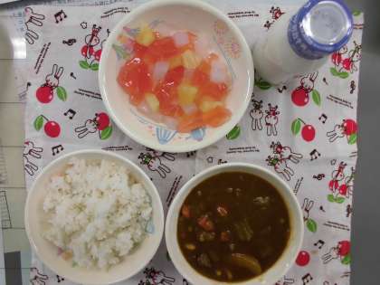 BBカレー 愛知のいちごゼリー和え ご飯 牛乳