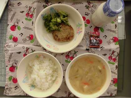 かす汁 愛知のキャベツ入りつくね ご飯 牛乳