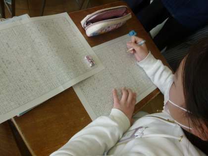 卒業文集の下書きに取り組んできました。ほぼ下書ができ、担任が見て、誤字脱字やより表現について個別に指導しています。下書ができた子から、ペンで清書をはじめまする
