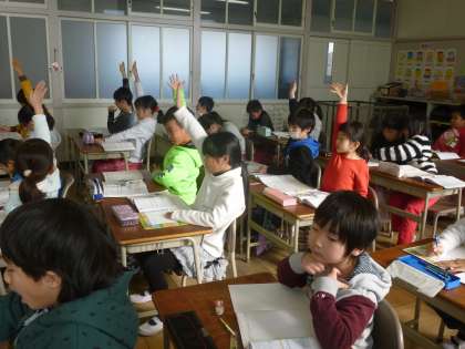 単位についての学習を進めています。今日は、120センチメートルを別の表し方では、どのようにするかを理解させました。子どもたちの理解が早く、練習問題にも意欲的に取り組みました。