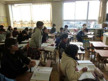 単位の仕組みについての学習を進めています。今日は、復習をしました。単位の前につく「デシ」や「ヘクト」などのいもについて説明し、単位間の関係について、再度、理解させました。