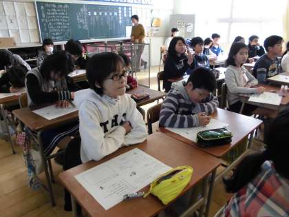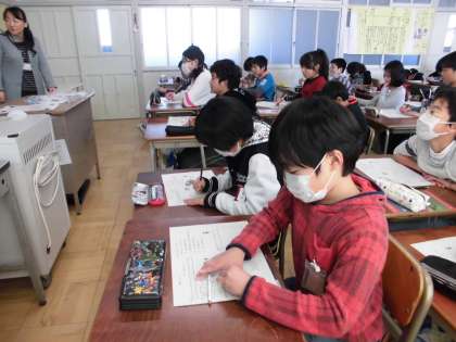 南部調理場より栄養士の奈木司様にお越しいただき、食生活についてご指導いただきました。カルシウムの働きについて、ワークシートに大切な言葉を書き込みました。「牛乳を毎日飲むこと」「ひじきや小魚を食べること」「毎日しっかり休養して、運動すること」などを確認することができました。