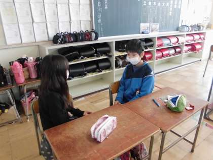 5年生の学活の様子です。「ほめ言葉のシャワー」を行いました。お互いに相手の良いところを1分間の中で、たくさん出していきます。ほめてもらった子たちの表情がとても優しくて、いい表情になっていますね。いい時間になりました。