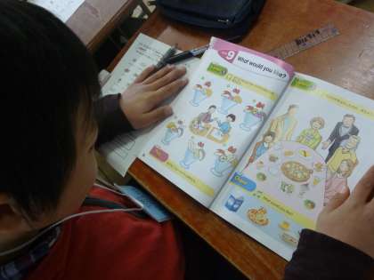 「何がほしいですか」という問いに対して「〜がほしい」と答える会話を学習しました。ほしいものは、食べ物を中心に答えていきました。