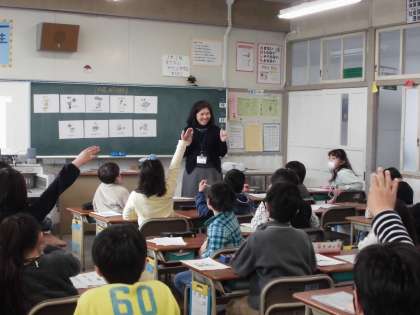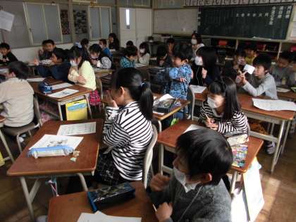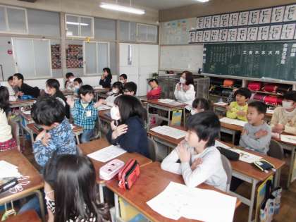 3年生の英語活動の時間です。今日は暖かい日です。今日は寒い日です。今日は暑い日です。暖かい・寒い・暑いを英単語に直し、ジェスチャーをつけて表現しました。子どもたちは笑顔で楽しく取り組むことができました。