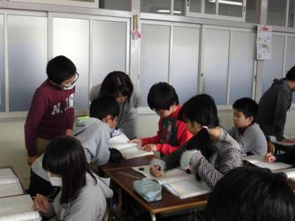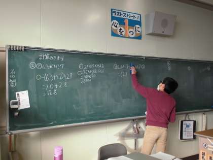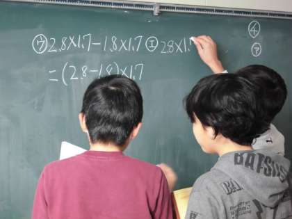 6年生の算数の授業のようすです。計算のきまりについて、復習問題を解きました。わからないところを質問することもできました。