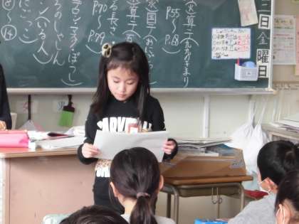 2年生の国語の授業の様子です。「おにごっこ」を説明する文章を読み、自分の経験を結び付けて、いつも遊んでいる遊びをもっとおもしろくするための工夫や思いを発表させました。