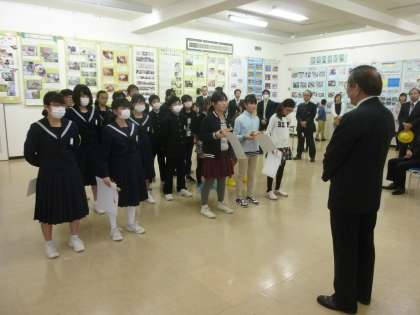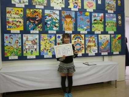 「一宮手をつなぐ子らの教育展ポスター」の表彰式がありました。本校6年生の梶浦さんのポスターが入選し、会場のスポーツ文化センターで賞状とトロフィーを受け取りました。入選おめでとうございす。