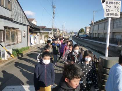 2月14日(火)に予定している持久走コースの下見を行いました。5年生からは、走る距離が長くなります。大江川沿いを走りますが、各自が自分の目標を持つことが大切です。自分の目標に向けて努力するよう指導しています。