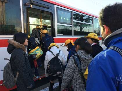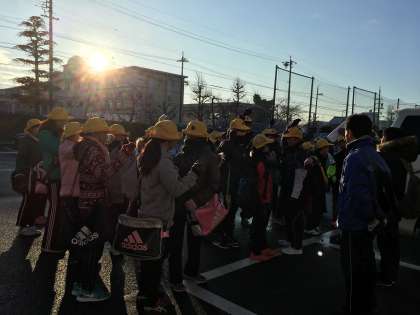 昨日は、雪のため延期になったロードレース大会でしたが、本日はお天気にも恵まれ、大会が開催されます。早朝から選手の児童たちが学校に集合しました。全員元気に出発しました。今日の大会の頑張りに期待します。