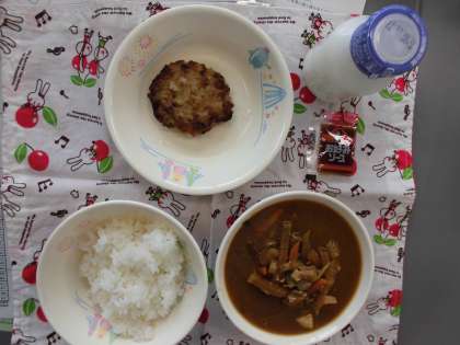 豚汁 キャベツ入りつくね ごはん 牛乳