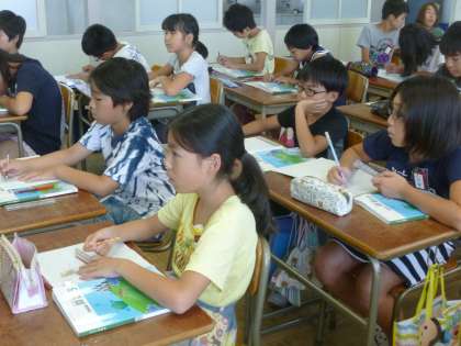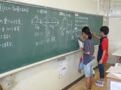 1学期の学習も大詰めです。今日は、「比を使った問題」の学習を進めました。線分図を書いて考えさせました。書くことで、筋道を立て、立式にまで進めることができます。じっくり考え、解決の糸口を見つけようとしている様子に中学生のような学びの姿勢を感じました。
