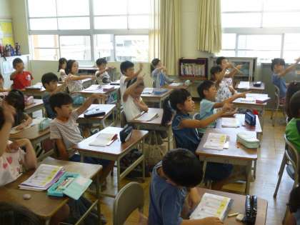 漢字ドリルを使って、漢字の学習をしました。まず、指を高くあげて、かき順を確認しました。それから、教師の後について読み方を全員で声に出して言いました。