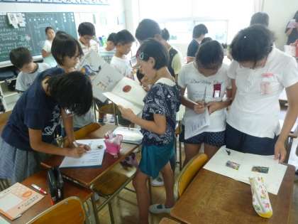 6年生の総合的な学習は、「国際理解」です。1学期は、国語の学習ともリンクさせて、世界の国々について、興味あることがらをパンフレットにまとめました。今日は、その作品鑑賞会を行いました。