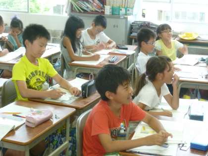 不思議な出来事に出会った登場人物の行動や気持ちに着目させて読み進めています。子どもの豊かな発想、素直な表現が授業を楽しいものにしています。