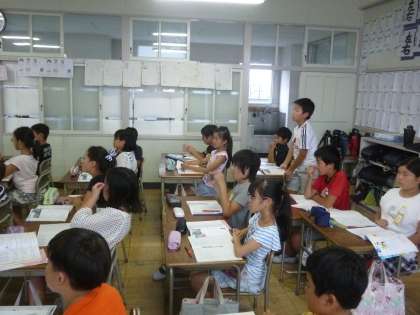 少数の仕組みについて説明しました。「1と0.1、0.01、0.001の関係」について数直線を使って理解させました。