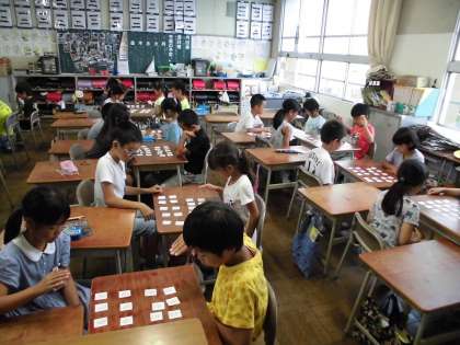 総合的な学習の一環で、百人一首を行いました。下の句を読み始めると、「はいっ!」という元気な声と共に札をとりました。繰り返し練習をしているうちに、随分早く取れるようになりました。