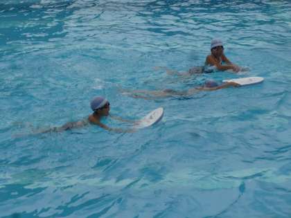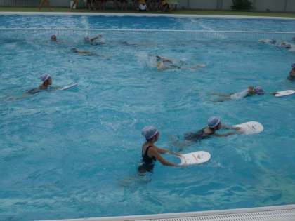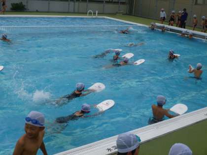 たいへん蒸し暑い一日でした。日差しはないものの、気温・湿度が高く、子どもたちにとって楽しい時間となったようです。少しでも長く泳げるように、グループごとで練習の仕上げを行いました。