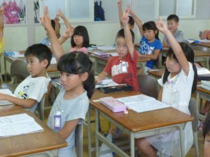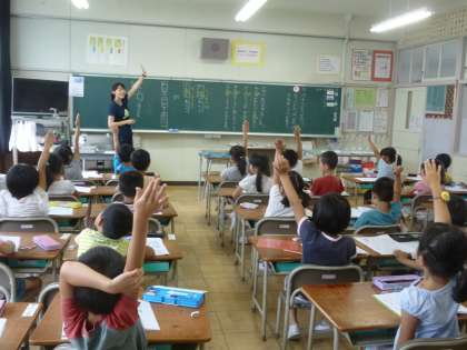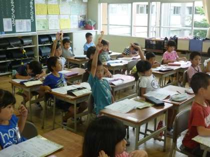 国語では、「は」「を」「へ」の使い方の指導をしました。これは、「わ」と「は」、「お」と「を」、そして、「え」と「へ」の正しい使い方を理解させるためです。黒板にわかりやすく事例を書き、丁寧に説明していきました。