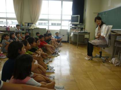 保護者読み聞かせ「りぼん」の皆様にお越しいただいて、今学期最後の読み聞かせをしていただきました。子どもたちのために、早朝から、しかも、たいへん蒸し暑い中、素敵な読み聞かせをしていただきありがとうございました。