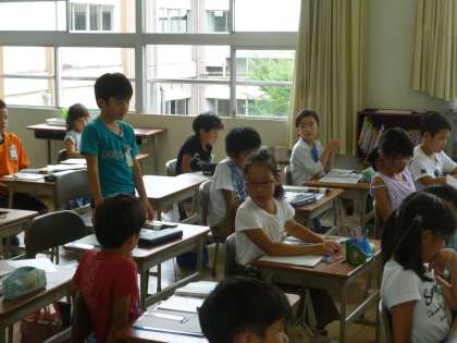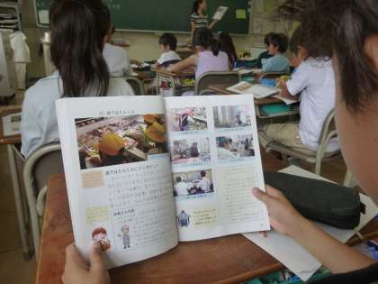社会科では、「店ではたらく人」についての学習を進めています。今日、スーパーマーケットでは、だれがどのような工夫や努力をしているかについて、写真を見ながら考えさせました。3年生は、2学期に近くのスーパーマーケットに見学に出かけます。