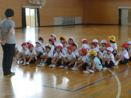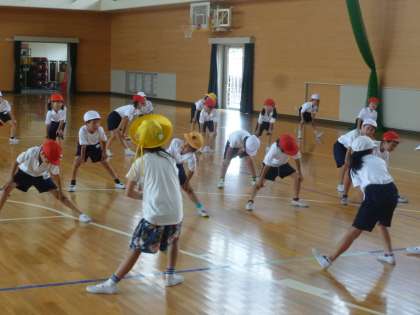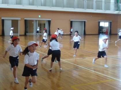 屋内運動場で「おにごっこ」をしました。この1学期間、子どもたちはとてもよく頑張りました。今日は、子どもたちへの「ごほうび」です。うれしそうな声、そして、笑顔の子どもたち。元気に走り回る子どもたちを見ていると、とてもうれしい気持ちになりました。