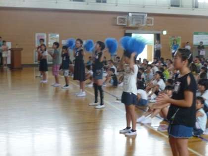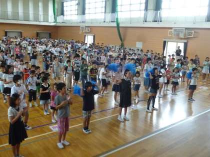 7月27日(木)、尾西プールにて開催される一宮市水泳選手権大会へ参加する選手を激励するための壮行会を行いました。児童会・代議員の先導で全校で応援エールを送りました。その後、キャプテンからのあいさつがありました。本番では、全員自己ベストを出せるよう頑張ってほしいと思います。
